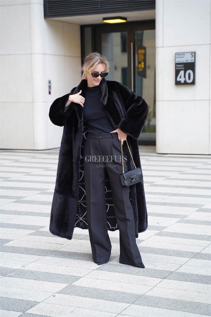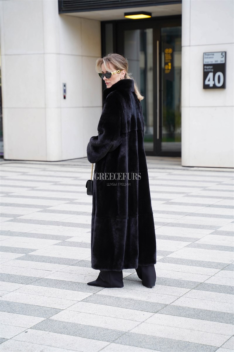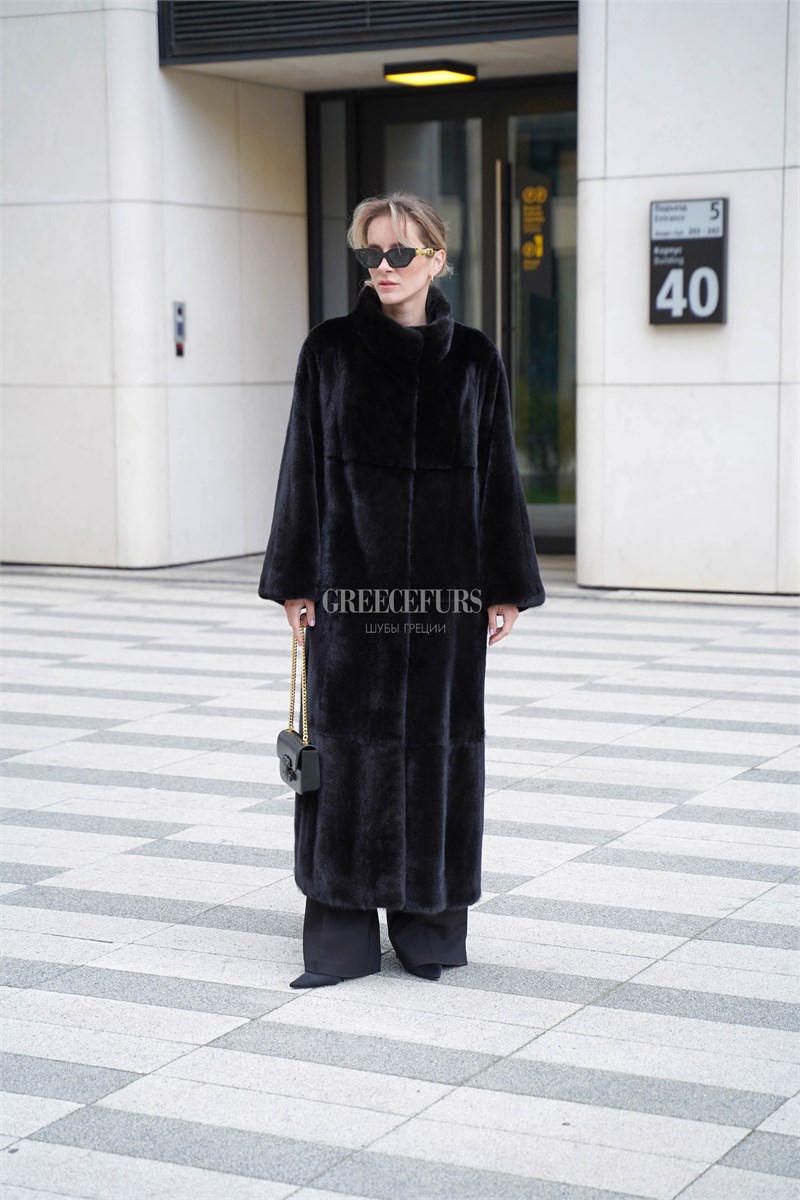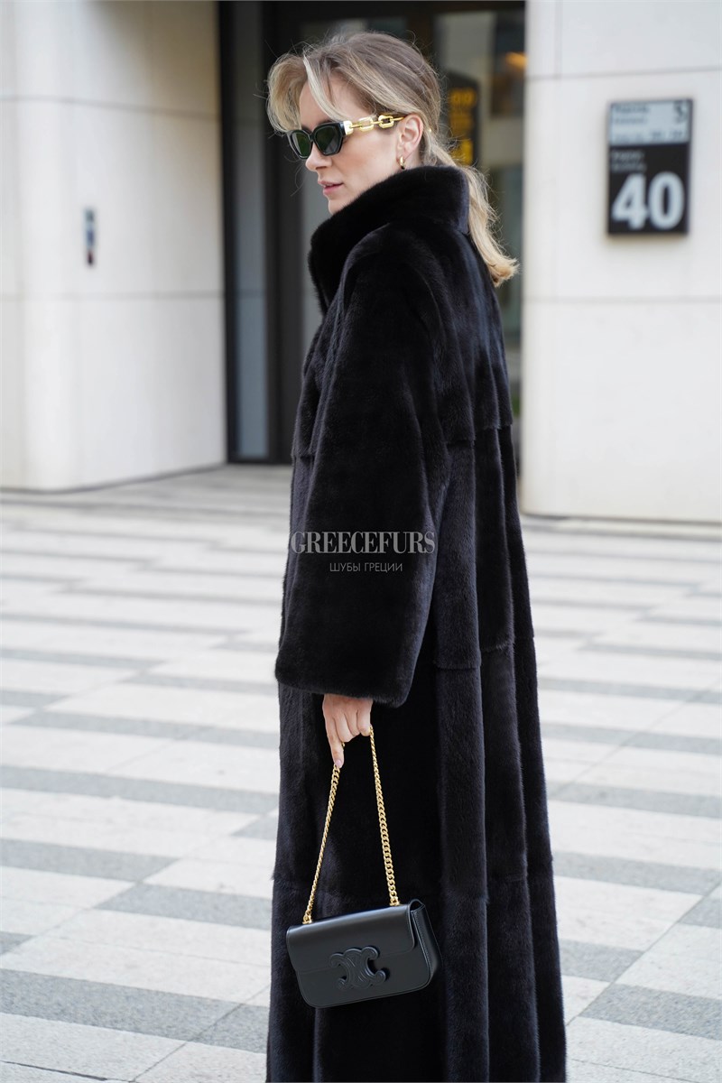 Норковая шуба Blackglama из пластин с воротником стойка в длине макси