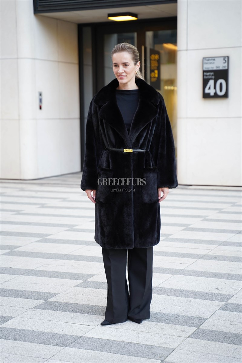 Норковая шуба Blackglama с английским воротником и накладными карманами