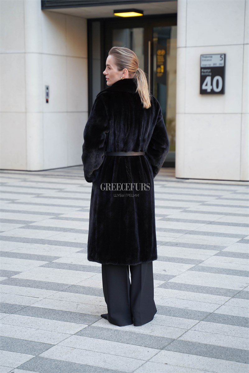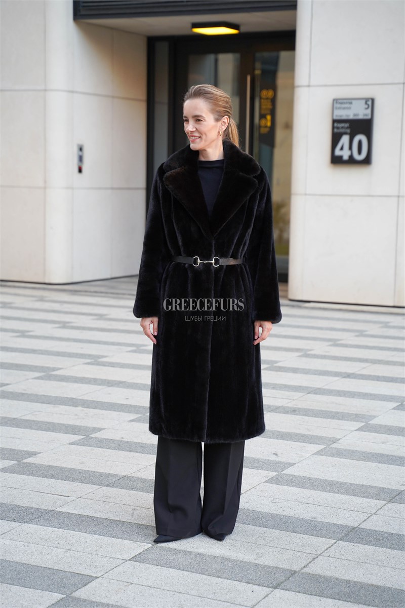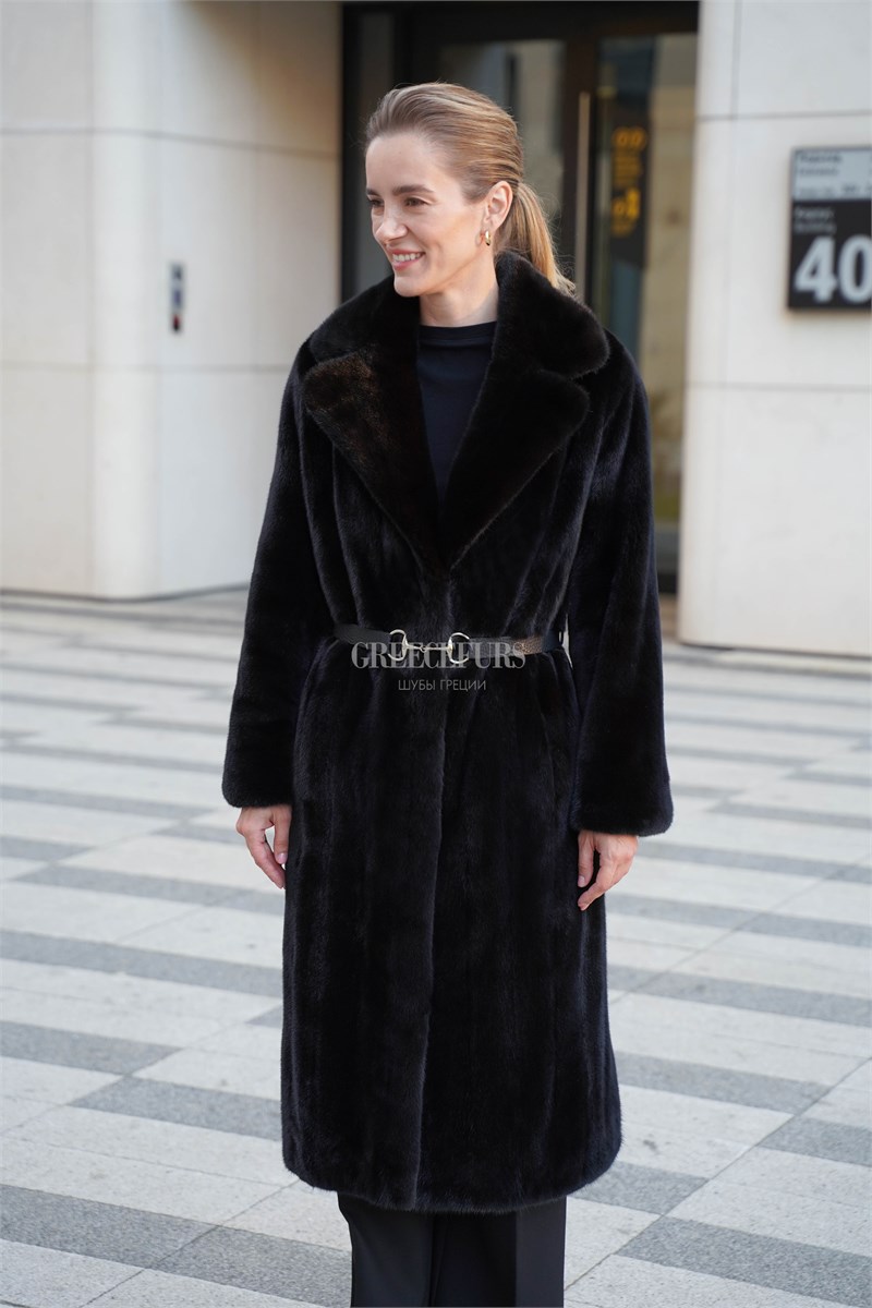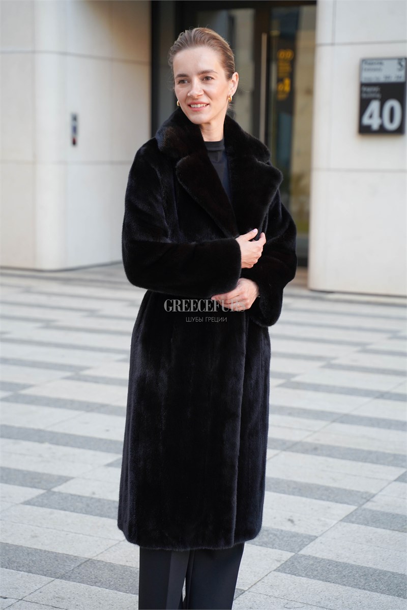 Норковое пальто Blackglama прямого кроя с английским воротником и классическими карманами