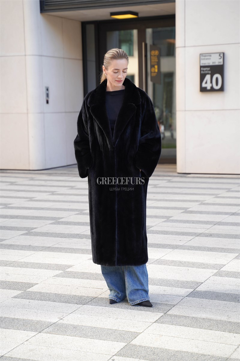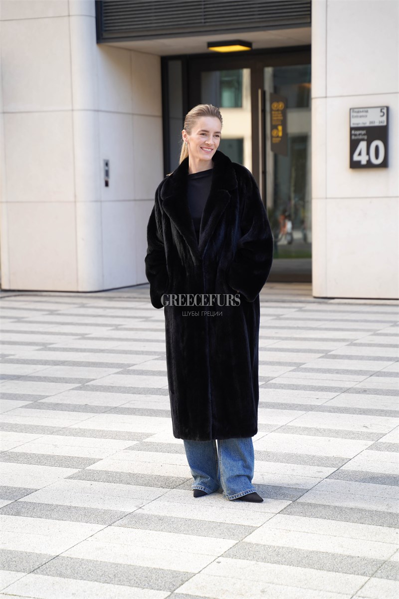 Норковое пальто Blackglama в технике роспуск с английским воротником