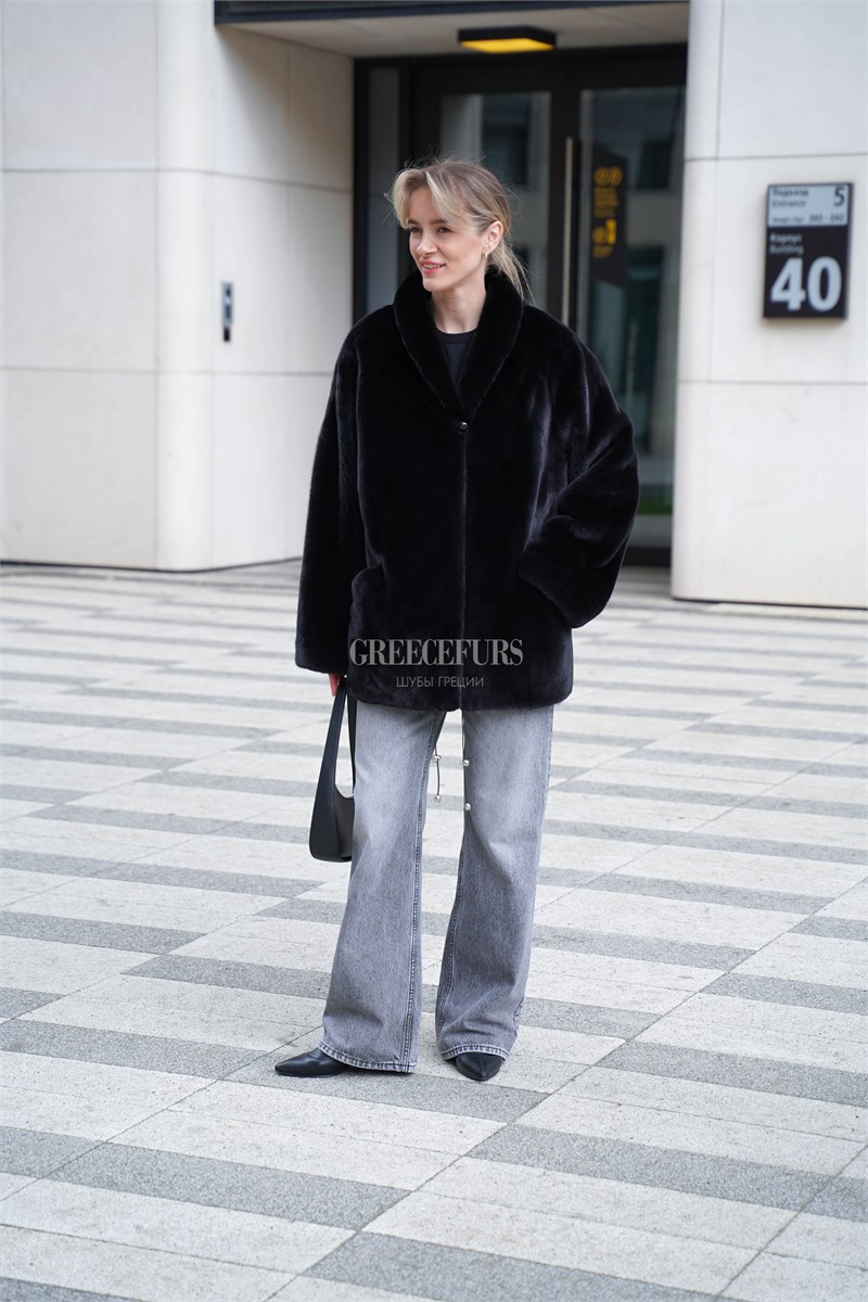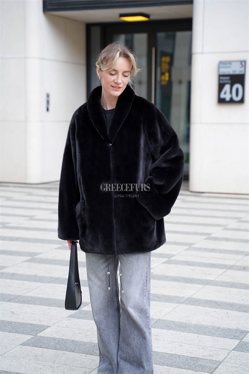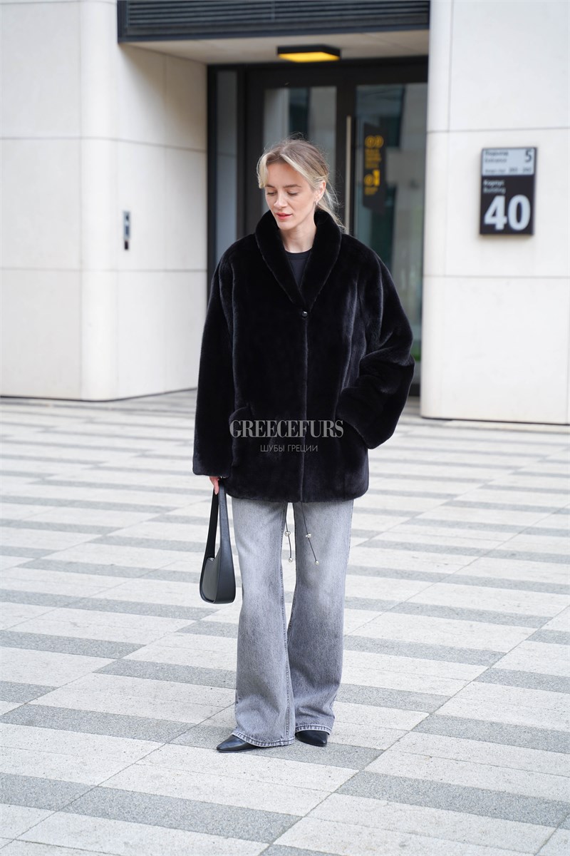 Норковый жакет Blackglama с шалевым воротником и акцентными карманами