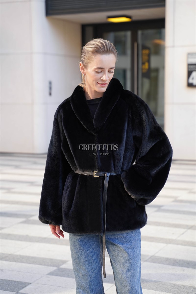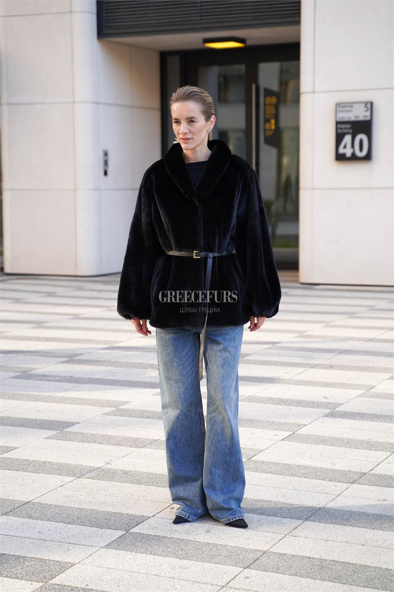 Норковый жакет Blackglama с воротником шаль и воздушными рукавами