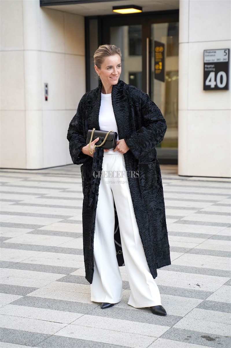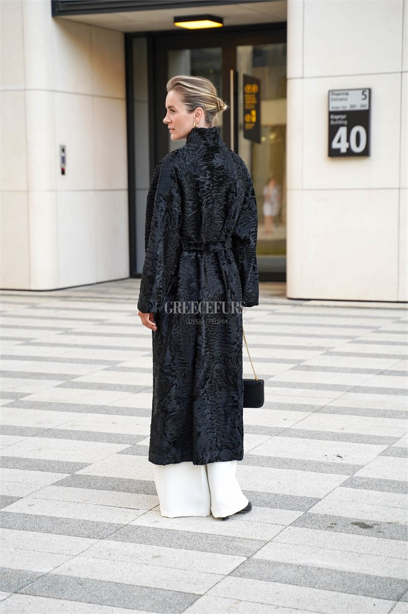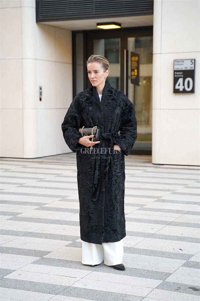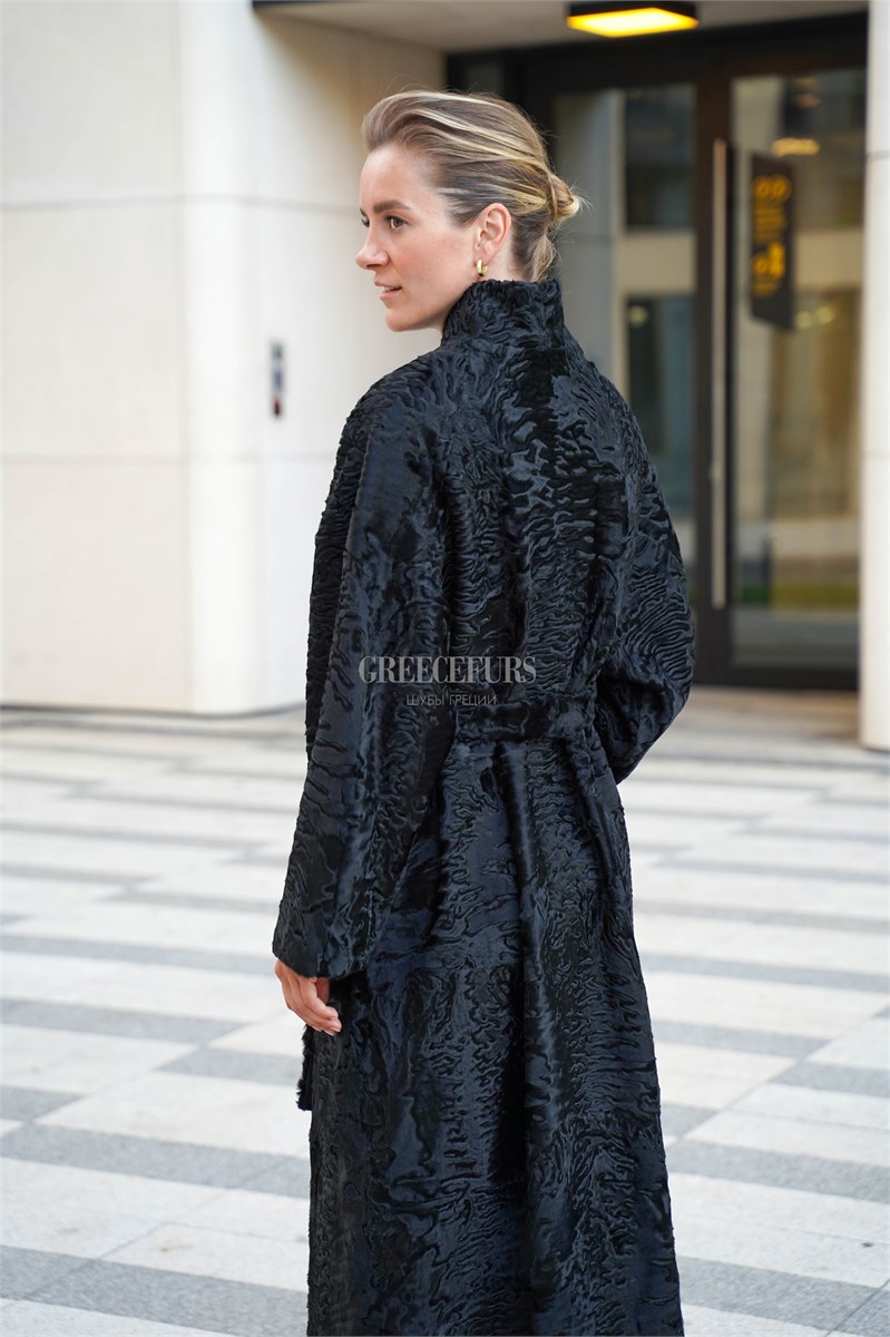 Пальто из африканского каракуля Swakara формата oversize с накладными карманами. Длина изделия 127 см. Длина рукава 76 см.